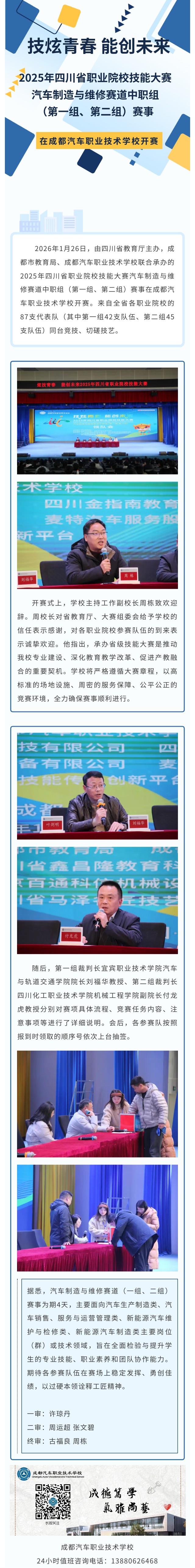技炫青春 能创未来 ——2025年四川省职业院校技能大赛汽车制造与维修赛道中职组(第一组、第二组)赛事在成都汽车职业技术学校开赛