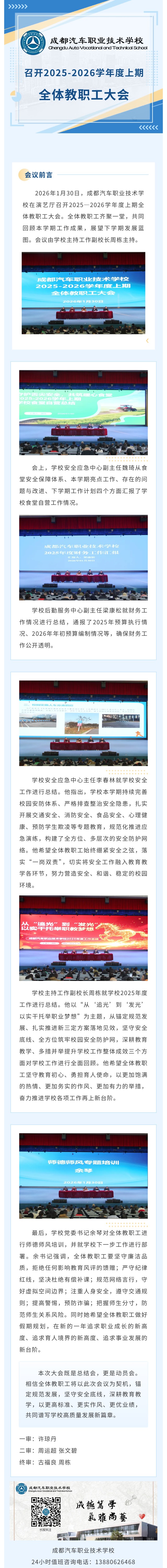 成都汽车职业技术学校召开2025—2026学年度上期全体教职工大会