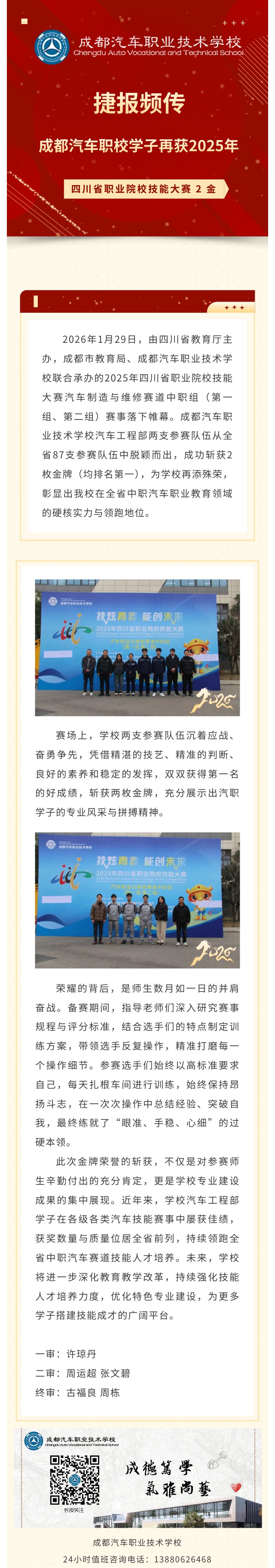 捷报频传!成都汽车职校学子再获2025年四川省职业院校技能大赛2金