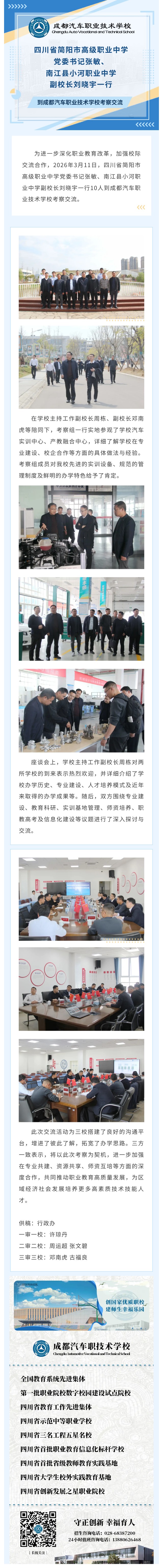 四川省简阳市高级职业中学党委书记张敏、南江县小河职业中学副校长刘晓宇一行到成都汽车职业技术学校考察交流
