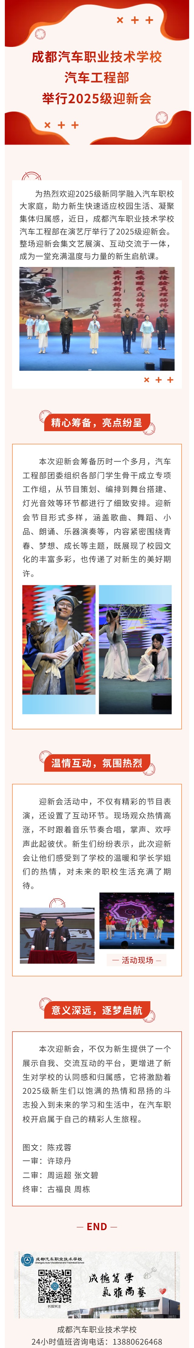 为进一步推动学校文艺活动的蓬勃发展,丰富学生校园文化生活,活跃学习氛围,同时为同学们提供一个真正展示自我的平台。11月15日、20日上午,汽车专业部分两批次举行了以“歌舞青春”为主题的文艺汇演活动。专业...